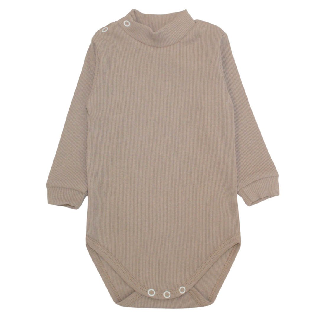 Сучасний боді - найактуальніший елемент гардеробу немовляти. Тому цей боді-гольф пісочного кольору, виготовлений з бавовняного полотна - рубчик, буде ідеальним варіантом для Вашої малечі. Полотно відмінно тягнеться і зберігає первинну форму. На рукавах є манжети, це дуже практично й зручно. Надіти такий бодик на малюка за мінімальний час - не проблема, виріб має дві кнопки біля горловини, а також 3 кнопки між ніжок. Боді однотонний, без зайвих деталей, його можна поєднувати з будь-якими штанцями, повзунами, кофтинами і ясельними комплектами ТМ "Арлекін".