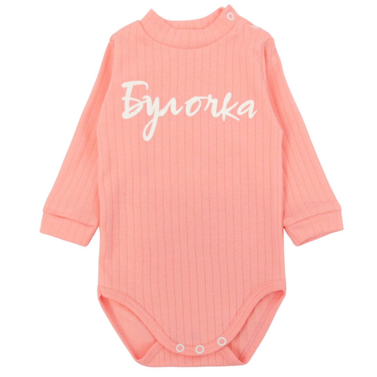 Є одяг, який відразу викликає посмішку - ще до того, як малюк його приміряв. Цей боді-гольф персикового кольору якраз з таких: ніжний, зручний і з милим написом Булочка, який додає образу особливого настрою. Модель виконана з полотна інтерлок рапорт тканина м'яка, еластична і приємна до тіла, відмінно підходить для щоденного носіння і не подразнює шкіру. Горловина-стійка акуратно закриває шию і робить боді особливо комфортним в міжсезоння. Для зручності переодягання передбачені кнопочки на плечі. А застібка між ніжок допомагає швидко змінити підгузник, не знімаючи виріб повністю.