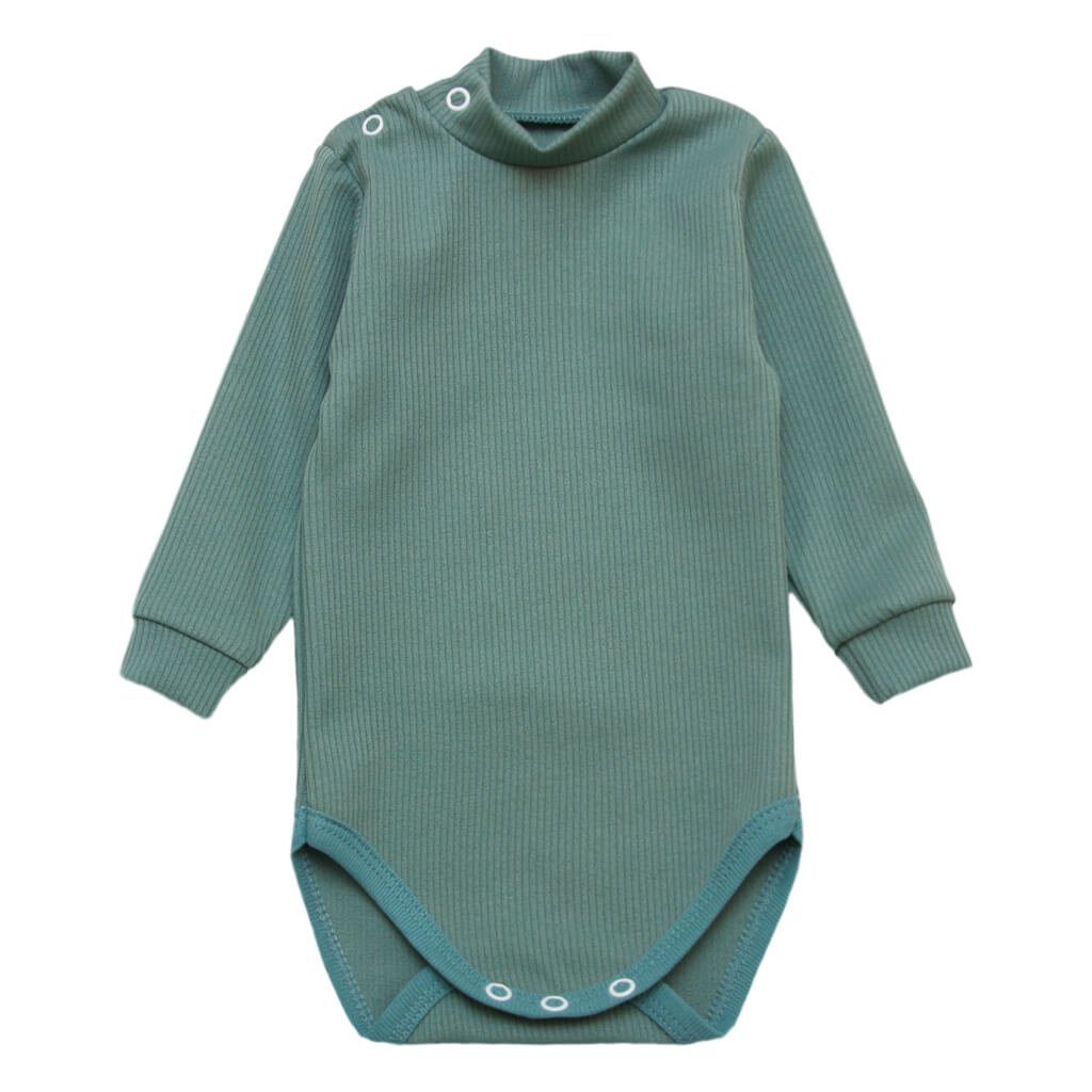 Ніжний, зручний і практичний - саме таким має бути ідеальний дитячий боді-гольф. Ця модель виконана з полотна рубчик fitilli пильно-м'ятного кольору, яке вирізняється еластичністю та м'якістю. Внутрішній бік тканини гладкий, що робить виріб максимально комфортним для ніжної дитячої шкіри. Горловина-стійка забезпечує захист від холоду, а кнопки біля коміра допомагають легко надягати і знімати боді без зайвих незручностей. Однотонний дизайн дає змогу поєднувати його з різними елементами дитячого гардероба, створюючи стильні та зручні образи. Матеріал здатний трохи давати усадку під час прання на високих температурах, тому для збереження форми рекомендується дбайливий догляд.