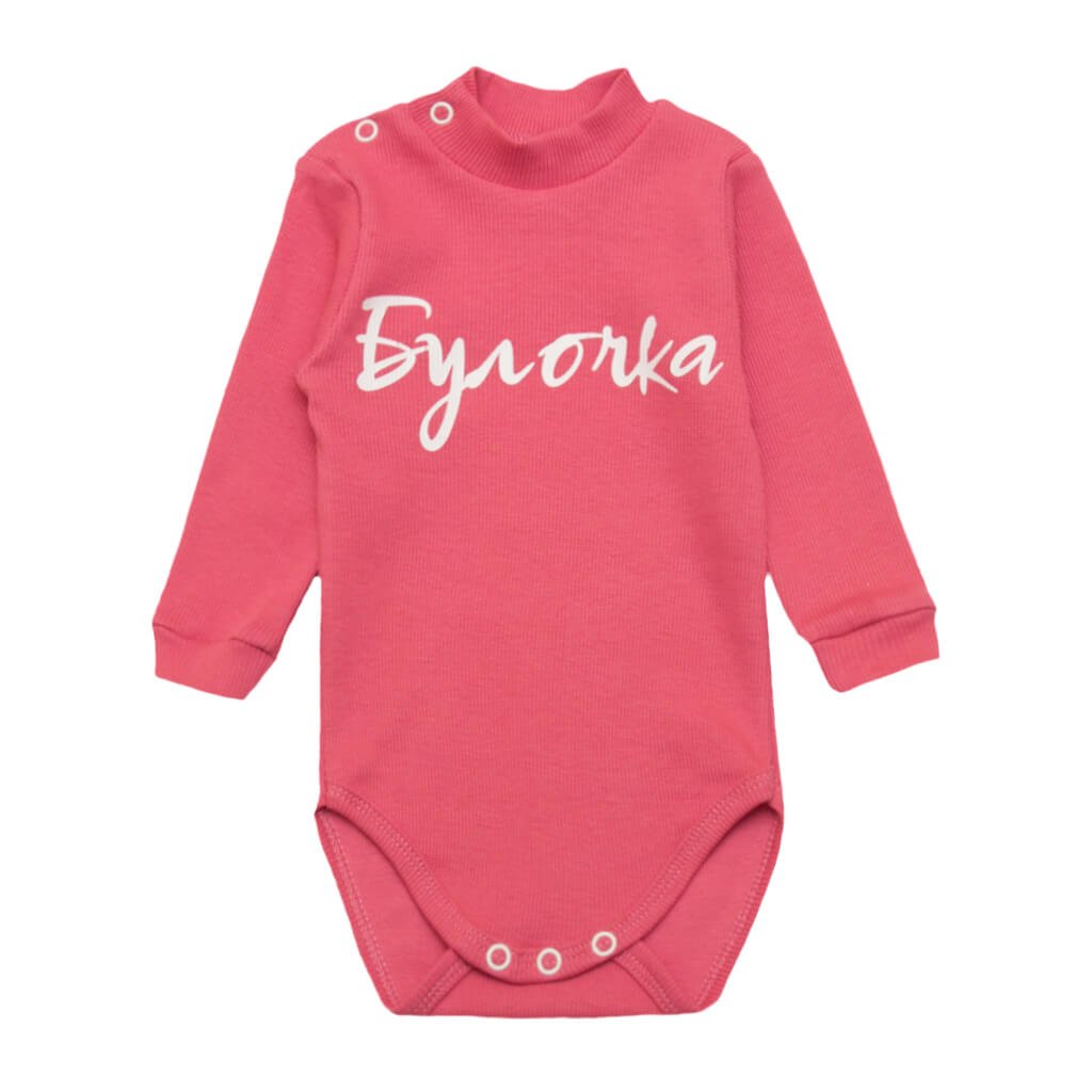 З першого погляду цей боді-гольф викликає відчуття тепла і затишку. Виконаний з м'якого полотна рубчик рожевого кольору з написом Булочка, він дбайливо прилягає до тіла, створюючи комфорт в будь-який час дня. Елегантна горловина-стійка не тільки захищає шию малюка від прохолоди, але і надає виробу акуратний зовнішній вигляд. Зручні кнопки на плечі і між ніжок роблять процес переодягання швидким і легким. На передній частині присутній милий принт, а різноманітність кольорів дозволить вибрати варіант на будь-який смак. Такий боді стане чудовою основою гардеробу малюка і ідеально підійде для щоденного носіння.