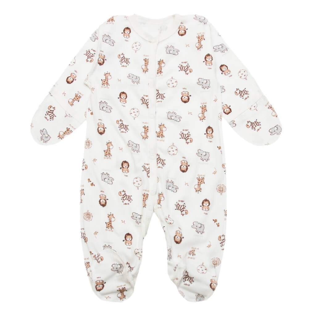 Комфорт малюка починається з правильно підібраного одягу, особливо в перші місяці життя. Чоловічок з інтерлоку рапорт молочного кольору з принтом сафарі стане ідеальним рішенням для повсякденного використання. Матеріал м'який, дихаючий і приємний до тіла - відмінно підходить для чутливої дитячої шкіри та допомагає підтримувати комфортну температуру в будь-яку пору року. Чоловічок застібається на зручні кнопочки, розташовані по всій довжині - від круглої горловини до самих ніжок. Закриті ручки і ніжки забезпечують додаткове тепло і захист. Зовнішні шви - ще один важливий елемент, який запобігає тертю та мінімізує ймовірність подразнення на шкірі.