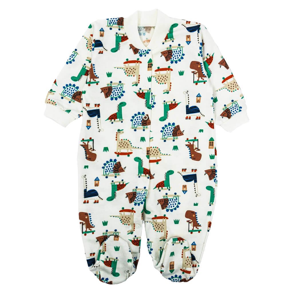 Представлений чоловічок створений, щоб забезпечити максимум тепла і ніжності для малюка кожен день. Виріб виконаний з м'якого полотна з начосом молочного кольору з принтом динозавриків, яке приємне до тіла і відмінно зберігає тепло, створюючи відчуття затишку навіть у прохолодну пору. Модель застібається на зручні кнопки, що полегшує процес переодягання та догляду за дитиною. Відкриті ручки дають малюкові свободу рухів, а закриті ніжки забезпечують додатковий комфорт і захист від холоду. Милий принт додає виробу чарівності, роблячи його не тільки практичним, але й стильним елементом дитячого гардеробу.