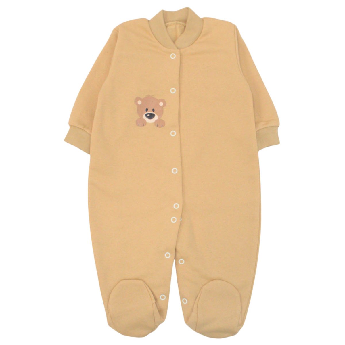 Чоловічок дитячий, бежевогго кольору з малюнком ведмедика, пошитий з натурального полотна з начісом, буде ідеальним вбранням. По всій довжині виробу є кнопки, на які й застібається чоловічок, це дозволяє швидко, з легкістю переодягати маля. Комір зроблений стійкою з еластичного манжета, на рукавах також є манжети, ніжки закриті. Однотонні кольори доповнюють красиві, яскраві й веселі забарвлення спереду чоловічка, на одній з поличок. Підберіть потрібний Вам розмір, колір і зробіть замовлення в нашому інтернет-магазині. Вашому малятку буде зручно та комфортно в такому чоловічку, це ми гарантуємо!