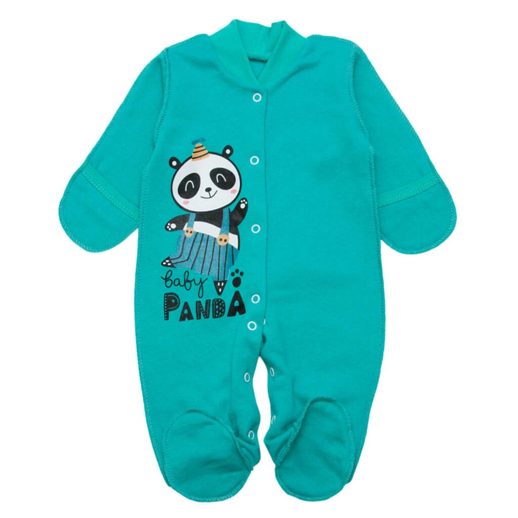 Цей дитячий чоловічок, м'ятного кольору з принтом панди, пошитий з натурального однотонного полотна з начісом. Модель зручна й комфортна для немовляти. Від коміра до п'ят чоловічок застібається на кнопочки, що дуже зручно при переодяганні карапуза. Ніжки закриті, це теж дуже зручно, та не вимагає додатково одягати на ніжки шкарпеточки. Рукави зроблені кишеньками, які можна відкривати або закривати. Шви зроблені на виворіт. Красиві кольори чоловічків доповнені яскравими малюнками. ТМ "Арлекін" робить тільки якісні речі для Ваших діток.