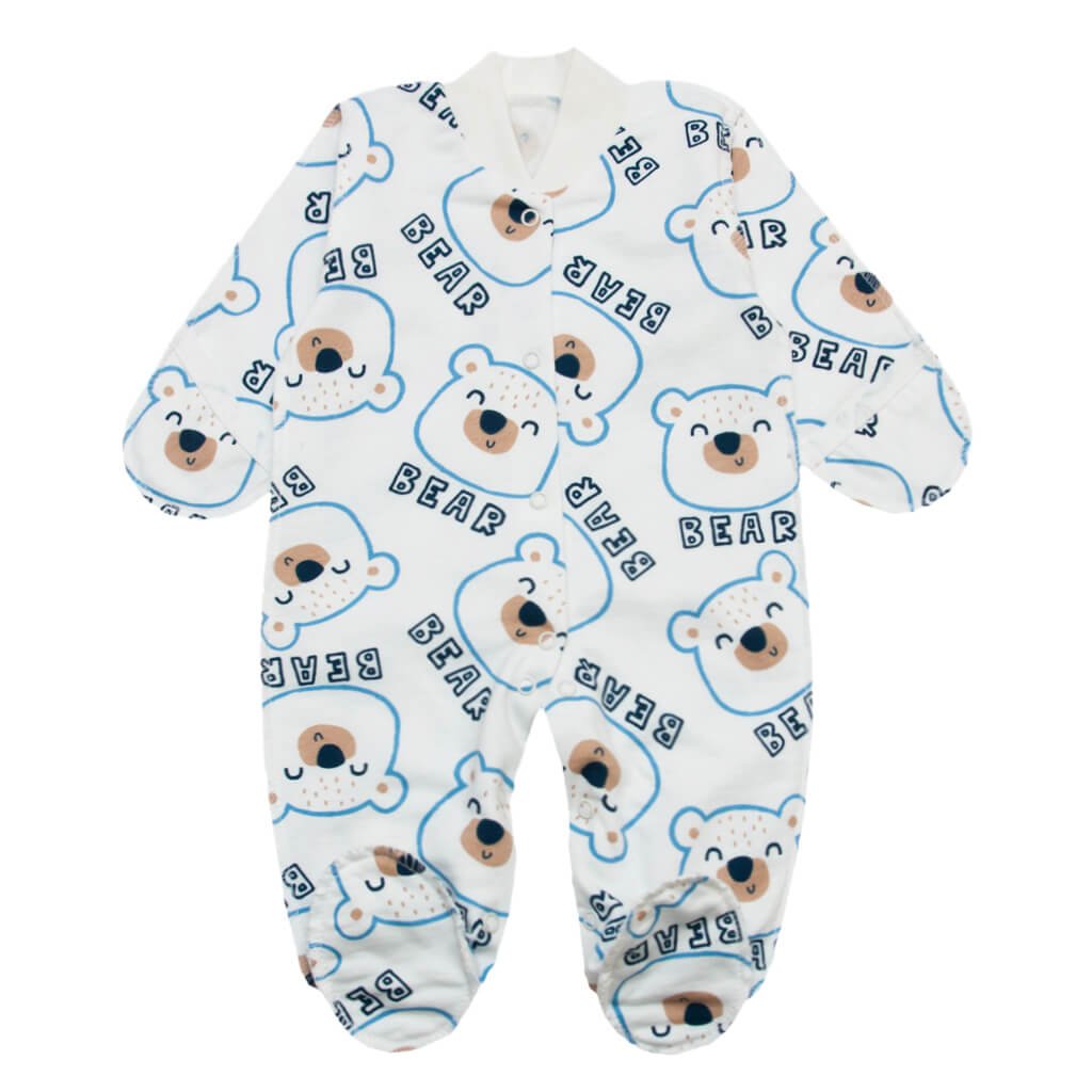 Теплий чоловічок – незамінний елемент дитячого гардеробу. Торгова марка «Арлекин» має великий та дуже різноманітний асортимент чоловічків для малюків. Представлена модель виготовлена із якісного начісного матеріалу молочного кольору з принтом ведмедика. Комбінезон застібається на кнопочки спереду. Горловина оброблена еластичним манжетом. Ручки та ніжки у представленої моделі закриті, завдяки чому ручки та ніжки дитини будуть захищені від зовнішніх пошкоджень. Крім цього, шви чоловічка виконані назовні, тому нічого не доставлятиме дискомфорт Вашому карапузу.