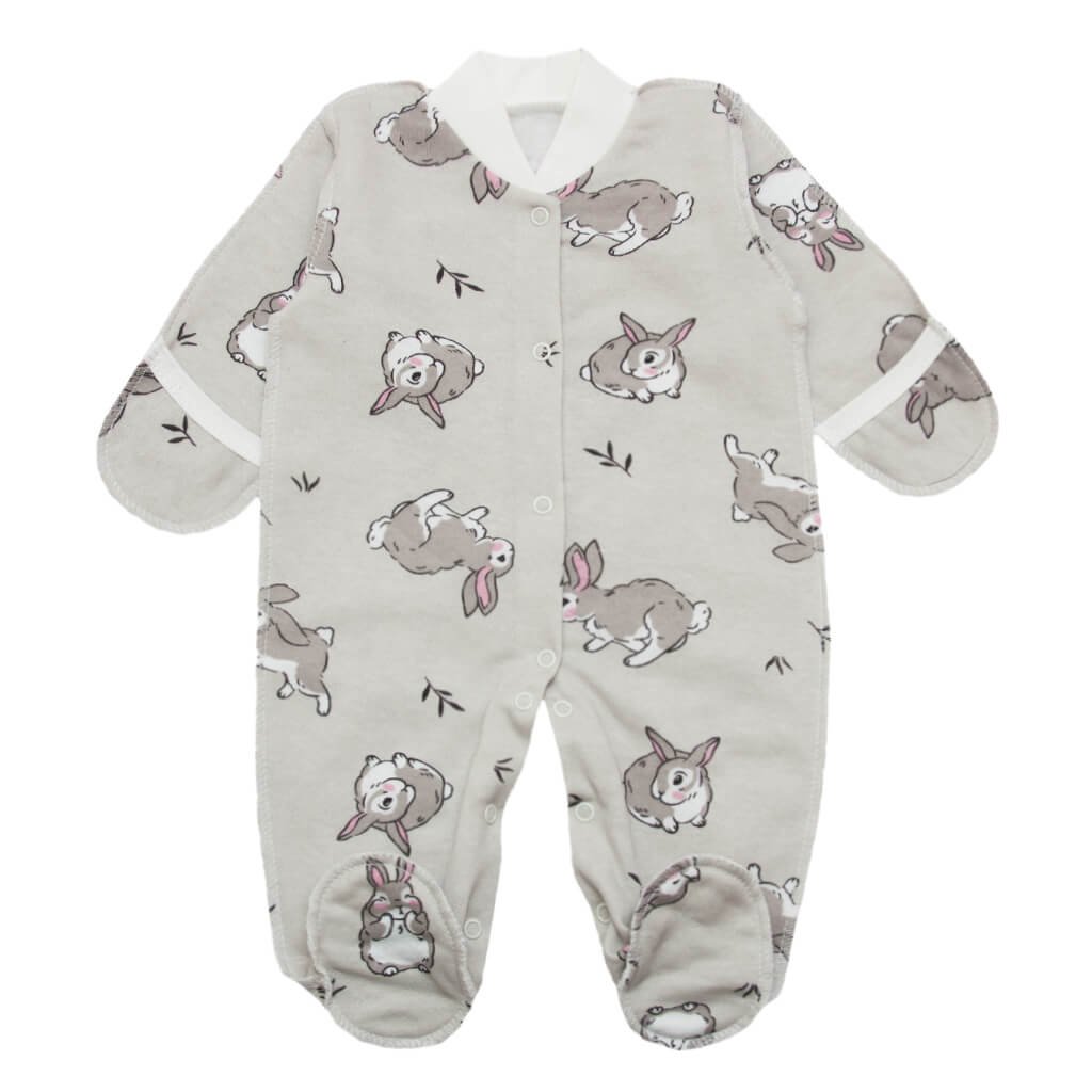 Теплий чоловічок – незамінний елемент дитячого гардеробу. Торгова марка «Арлекин» має великий та дуже різноманітний асортимент чоловічків для малюків. Представлена модель виготовлена із якісного начісного матеріалу сірого кольору з принтом зайчика. Комбінезон застібається на кнопочки спереду. Горловина оброблена еластичним манжетом. Ручки та ніжки у представленої моделі закриті, завдяки чому ручки та ніжки дитини будуть захищені від зовнішніх пошкоджень. Крім цього, шви чоловічка виконані назовні, тому нічого не доставлятиме дискомфорт Вашому карапузу.
