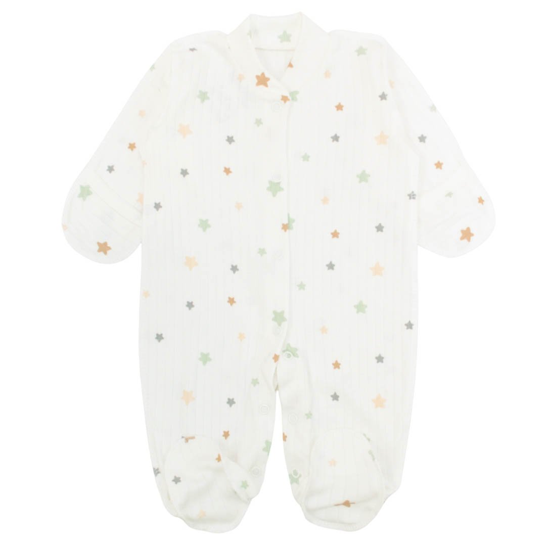 Дитячий чоловічок для новонароджених, виконаний з полотна інтерлок рапорт, створений для комфорту Вашого малюка. Інтерлок - це м'яка, щільна і натуральна тканина, яка ідеально підходить для ніжної шкіри новонародженого. Вона не викликає подразнень, дозволяє шкірі «дихати» і зберігає тепло, що особливо важливо для перших місяців життя. Чоловічок має закриті ручки та ніжки, що забезпечує додаткове тепло та захист для маленької дитини. Розміри представлені для малюків зростом 56 і 62 см, що дає змогу вибрати відповідний варіант для найменших. Модель молочного кольору з принтом зірочок, та доступна в декількох ніжних і приємних кольорах, які підійдуть як для хлопчиків, так і для дівчаток.