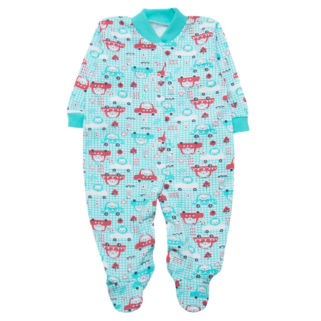 Чоловічок дитячий м'ятного кольору, принт машинки - найнеобхідніший елемент гардеробу немовляти в сучасному світі. Ми вже не уявляємо собі, що б ми робили без цього такого простого, і в той же час такого необхідного виробу. Чоловічок включає кофтину та повзунки в одному виробі, при цьому, одягнувши його, Ви можете не переживати, що кофтина може висковзнути з заправлених повзунків, тому Вашому малюку не загрожує протяг. Спереду розташовується застібка на кнопках, вона прекрасно підходить до цього чоловічка. Ця модель буде вам корисною у будь-якому разі, ви зможете його використовувати як спальний варіант, так і піддягти під теплий одяг.