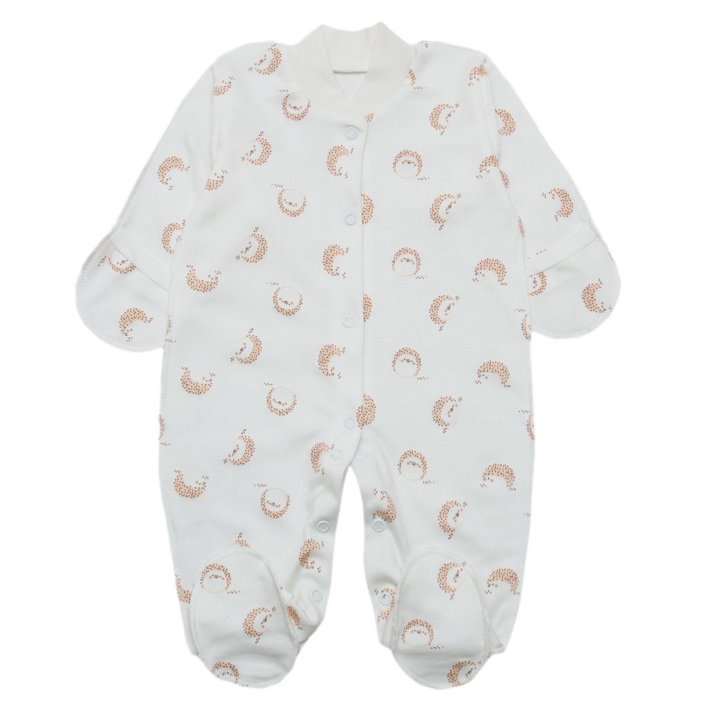 Чоловічок дитячій виконан з бавовняного полотна інтерлок, білого кольору з малюнком їжачків. Полотно м'яке, приємне до тіла, не викликає алергії. По всій довжині є кнопочки, що дозволяють з легкістю переодягати малятко. Комір зроблений стійкою, на рукавах кишеньки, які можуть бути відкритими й закритими. Всі шви в чоловічку зроблені на виворіт, тому Вашій малечі нічого не заважатиме та не давитиме. Ніжки закриті, що теж дуже зручно, не треба додатково одягати шкарпеточки. У такому сліпі Вашій дівчинці буде тепло та комфортно.