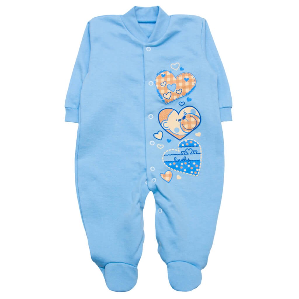 Чоловічок для хлопчика, блакитного кольору, принт звірята, виготовлений з бавовняного полотна начіс. Якщо правильно доглядати, виріб з такого полотна довго радуватимуть своїм первинним виглядом. Полотно після прання не сідає, добре зберігає форму та колір, легко прасувати. Ця модель чоловічка дуже зручна у використанні, від коміра до п'ят на чоловічку є кнопочки, що полегшує та прискорює переодягання малюка. На комірці й рукавах є манжети. На одній з поличок чоловічок прикрашений красивим малюнком, який точно не залишить Вас байдужими.