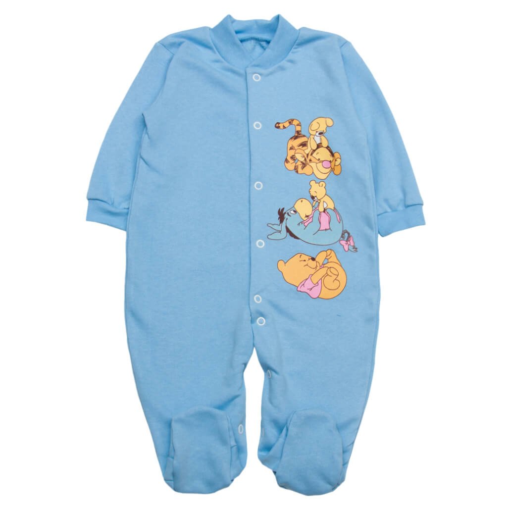 Чоловічок для хлопчика, блакитного кольору, принт звірята, виготовлений з бавовняного полотна начіс. Якщо правильно доглядати, виріб з такого полотна довго радуватимуть своїм первинним виглядом. Полотно після прання не сідає, добре зберігає форму та колір, легко прасувати. Ця модель чоловічка дуже зручна у використанні, від коміра до п'ят на чоловічку є кнопочки, що полегшує та прискорює переодягання малюка. На комірці й рукавах є манжети. На одній з поличок чоловічок прикрашений красивим малюнком, який точно не залишить Вас байдужими.