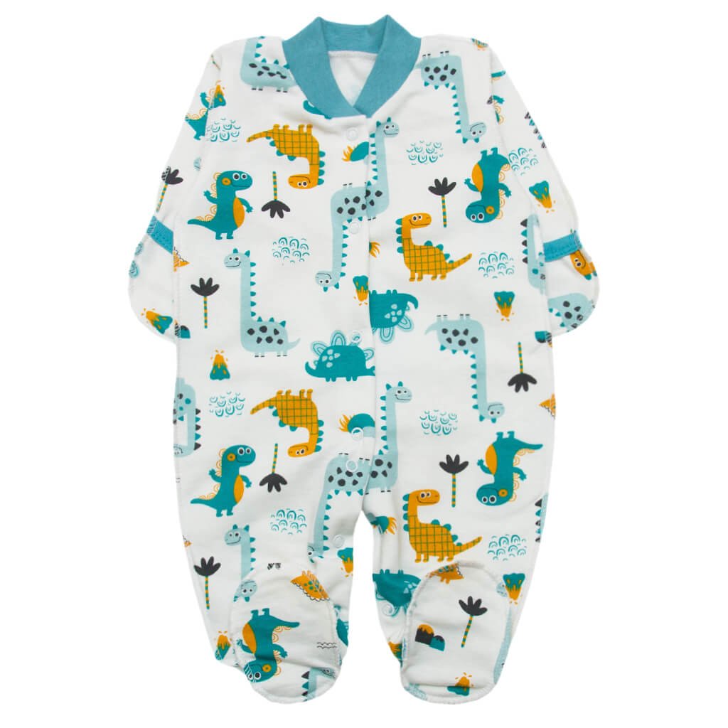Теплий чоловічок – незамінний елемент дитячого гардеробу. Торгова марка «Арлекин» має великий та дуже різноманітний асортимент чоловічків для малюків. Представлена модель виготовлена із якісного начісного матеріалу білого кольору з принтом дінозавра. Комбінезон застібається на кнопочки спереду. Горловина оброблена еластичним манжетом. Ручки та ніжки у представленої моделі закриті, завдяки чому ручки та ніжки дитини будуть захищені від зовнішніх пошкоджень. Крім цього, шви чоловічка виконані назовні, тому нічого не доставлятиме дискомфорт Вашому карапузу.