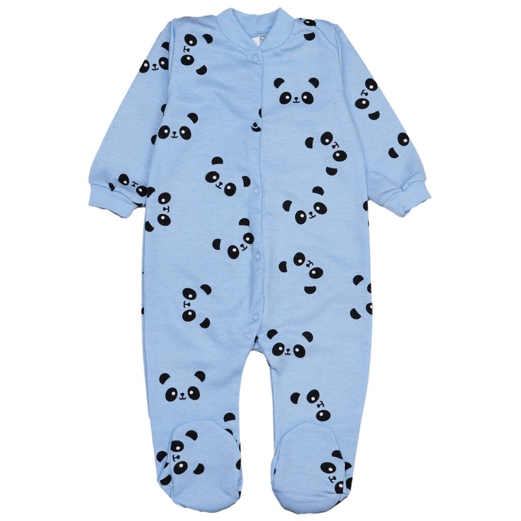 Дитячий теплий чоловічок блакитного кольору з принтом панди з начісом, із відкритими ручками та закритими ніжками - чудовий вибір на прохолодну пору року. Від горловини і до низу памперсу чоловічок розстібається на кнопках, що зручно при переодяганні. Такий комбінезон підійде в якості спального та домашнього одягу, а також є чудовим варіантом одягу під низ вуличного комбінезону чи костюму. Тканина на 100% складається з бавовни, що важливо для дитячого одягу, а зсередини є утеплення, яке допоможе зігрітися малюку. Обирайте найкращий одяг для дитини за доступною ціною!