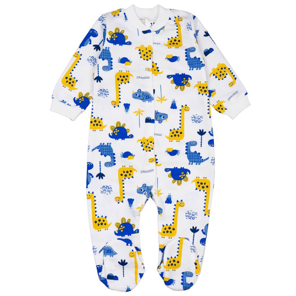 Дитячий теплий чоловічок молочного кольору з принтом динозаврів з начісом, із відкритими ручками та закритими ніжками - чудовий вибір на прохолодну пору року. Від горловини і до низу памперсу чоловічок розстібається на кнопках, що зручно при переодяганні. Такий комбінезон підійде в якості спального та домашнього одягу, а також є чудовим варіантом одягу під низ вуличного комбінезону чи костюму. Тканина на 100% складається з бавовни, що важливо для дитячого одягу, а зсередини є утеплення, яке допоможе зігрітися малюку. Обирайте найкращий одяг для дитини за доступною ціною!