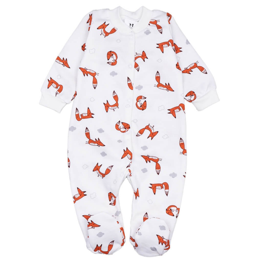 Дитячий теплий чоловічок молочного кольору з принтом лисичок з начісом, із відкритими ручками та закритими ніжками - чудовий вибір на прохолодну пору року. Від горловини і до низу памперсу чоловічок розстібається на кнопках, що зручно при переодяганні. Такий комбінезон підійде в якості спального та домашнього одягу, а також є чудовим варіантом одягу під низ вуличного комбінезону чи костюму. Тканина на 100% складається з бавовни, що важливо для дитячого одягу, а зсередини є утеплення, яке допоможе зігрітися малюку. Обирайте найкращий одяг для дитини за доступною ціною!