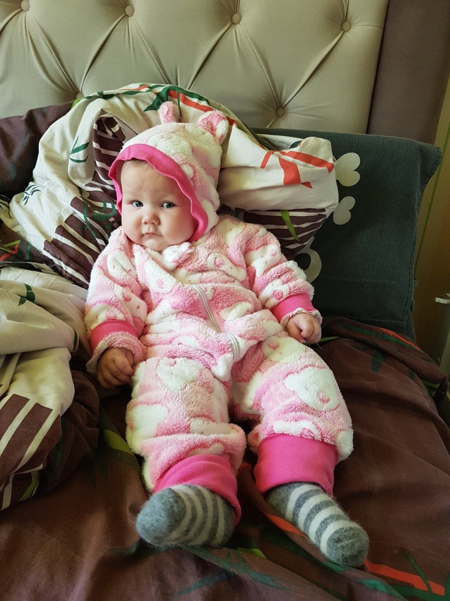 Потрясающий комбенизончик для девочки. В реале выглядит круче чем на фот. Цвет насыщеный и по текстуре нереально мягкий! Капюшон глубокий с симпотичными ушками. Взяли на размер больше так как хотим всю зиму отходить, а может быть и начало весны ( хорошо манжетики позвляют их подвернуть). Нам 7 месяцев, взяли размер на 9-12 м.Плюси: Мягкий, красивый, теплый, защита на кончике змейки.Мінуси: Нет