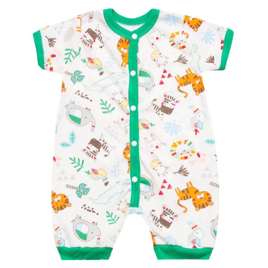 Шкіра малюків дуже ніжна і чутлива, тому тканина, з якої шиється дитячий одяг, повинна бути міцною, натуральною, гіпоалергенною та абсолютно безпечною для дітей. Інтерлок прекрасно поєднує в собі всі перераховані вище якості. Представлена модель дитячого пісочника якраз виготовлена з даного полотна. Комбінезон, принт сафарі з зеленою окантовкою, застібається на невеликі кнопочки спереду. В такому пісочнику Вашій дитині буде неймовірно комфортно. Завдяки зручному крою, нічого не буде сковувати рухи дитини.