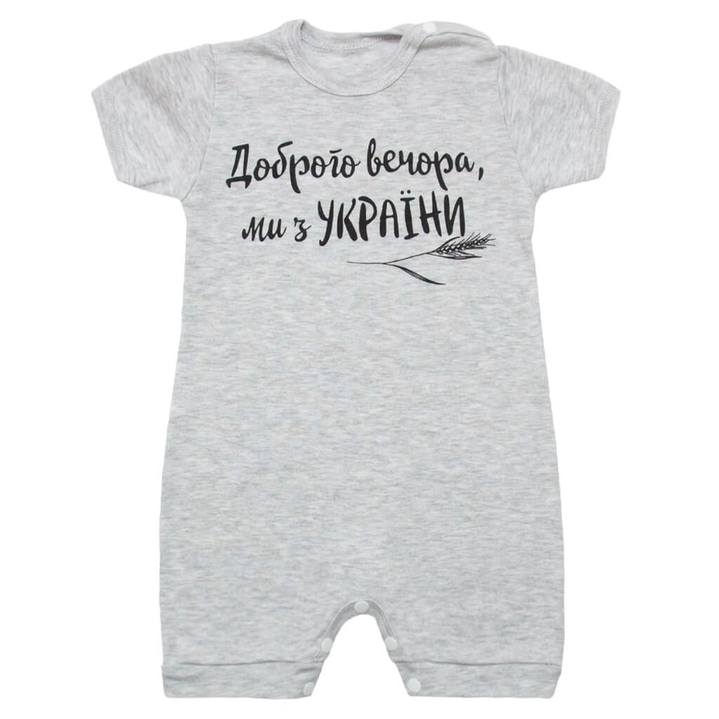 Дитячі пісочники - одна з найпрактичніших і найфункціональніших видів одягу для малюків на літо. Перевага таких комбінезонів у тому, що вони дуже комфортні і при цьому не сковують рухи дитини. Також пісочники зручні при швидкому одяганні або перевдяганні малюка. Кнопочки на виробі розташовані знизу, між ніжками. Дана модель сірого пісочника пошита із високоякісної рібани. Полотно повністю екологічно чисте та досить еластичне. Прикрашає комбінезон патріотичний напис, який присутній на лицьовій стороні виробу.