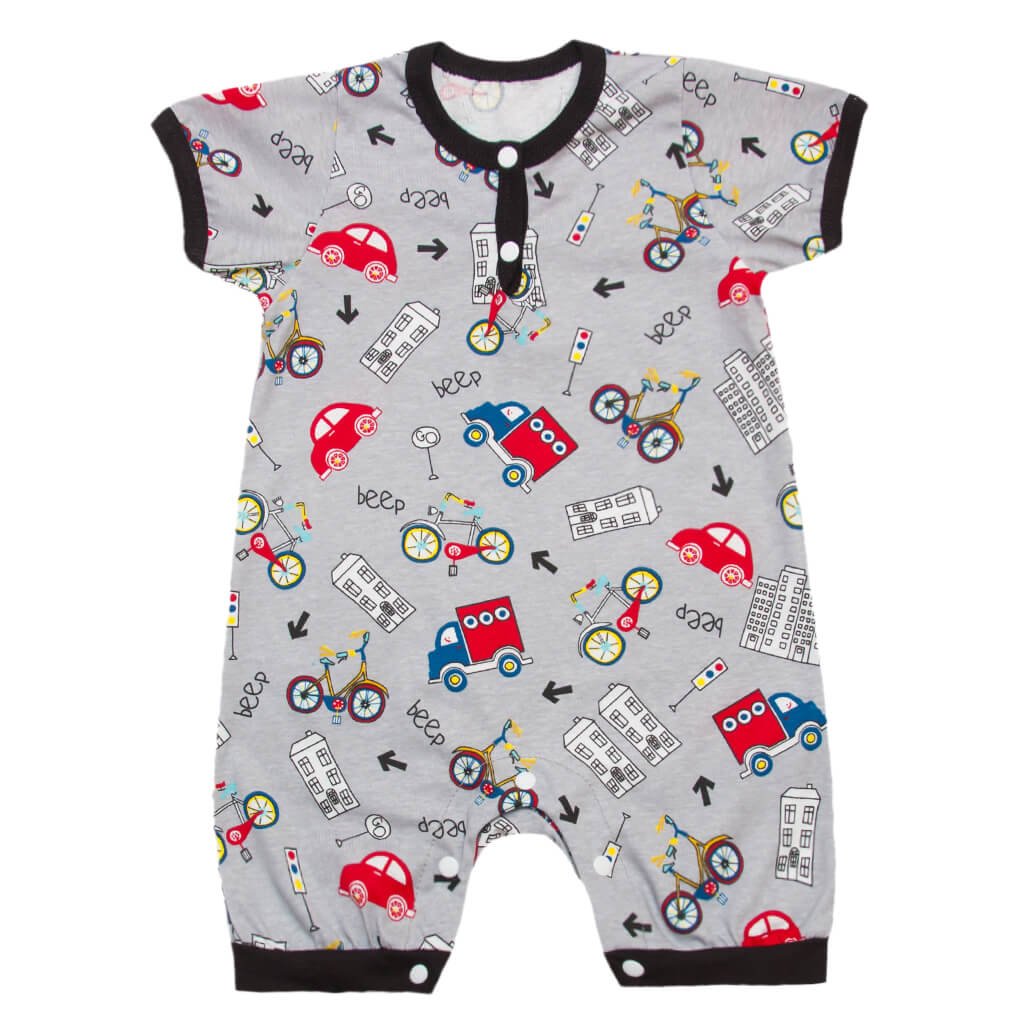 Пісочники - представляють собою комбінезони для малюків, які з вигляду нагадують боді з коротким рукавом і подовженими шортиками. Такий комбінезон буде відмінним варіантом для теплого літа. Застібається пісочник на кнопочки, які розташовані на горловині, а також знизу між ніжок, для більш легкого вдягання або переодягання Вашого карапуза. Сам виріб виготовлений з натурального куліра з принтом транспорт. Кожна матуся знає, що таке полотно найкраще підходить для пошиття одягу для найменших. Тканина кулір не викликає роздратування й алергії на ніжній шкірі малюка.