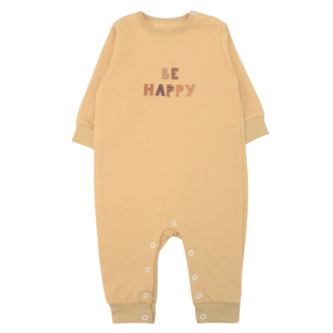Зима вже зовсім близько, а значить, настав час подбати про теплий і затишний гардероб для Вашого малюка. Дитячий ромпер бежевого кольору з принтом Be happy з полотна начісування стане відмінним вибором для холодної пори року. Його м'яка і приємна до тіла тканина з начосом забезпечує тепло і комфорт навіть у найморозніші дні. Такий ромпер - це не тільки практичний одяг для повсякденного носіння, а й стильне рішення для святкових подій завдяки яскравому дизайну на передній частині. Ромпер оснащений зручними кнопками по всій довжині ніжок, що полегшує процес переодягання і зміни підгузків. Кнопочки також передбачені біля горловини, що робить процес одягання ще більш швидким і комфортним.