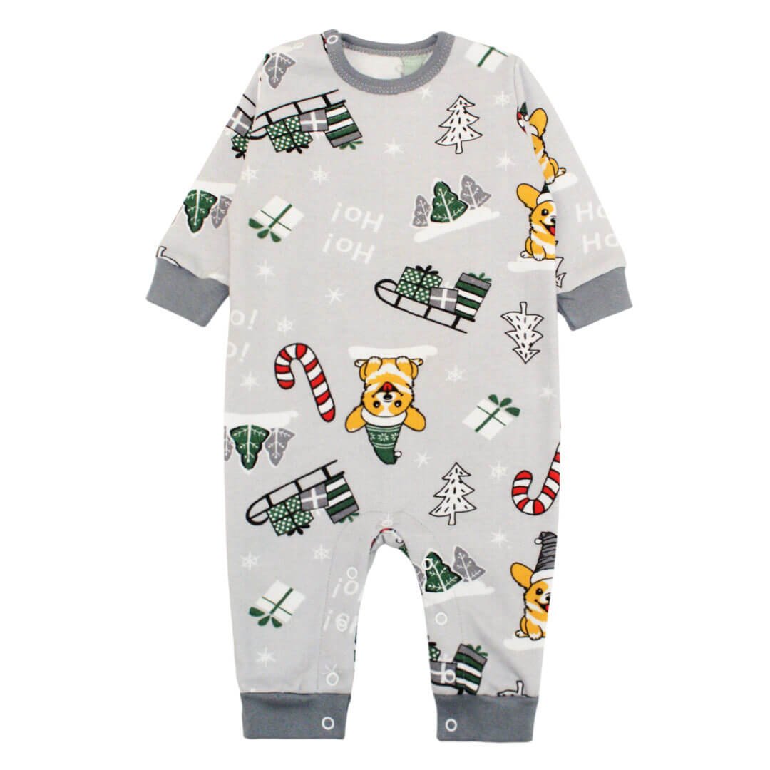 Цей чарівний дитячий ромпер немов створений, щоб подарувати малюкові святковий настрій і затишок в зимові дні. М'яке полотно з начосом сірого кольору дарує ніжне тепло та комфорт, а кумедний новорічний малюнок собачек робить образ по-справжньому чарівним. Таке вбрання ідеально підійде для домашніх свят, фотосесій або просто затишних вечорів з родиною. Комбінезон продуманий до дрібниць: кнопочки на плечі та між ніжок дозволяють легко переодягнути малюка. Манжети на рукавах і штанинах м'яко фіксуються, не перетискають і захищають від проникнення холодного повітря. Завдяки вільному крою дитині буде зручно рухатися, грати і спати