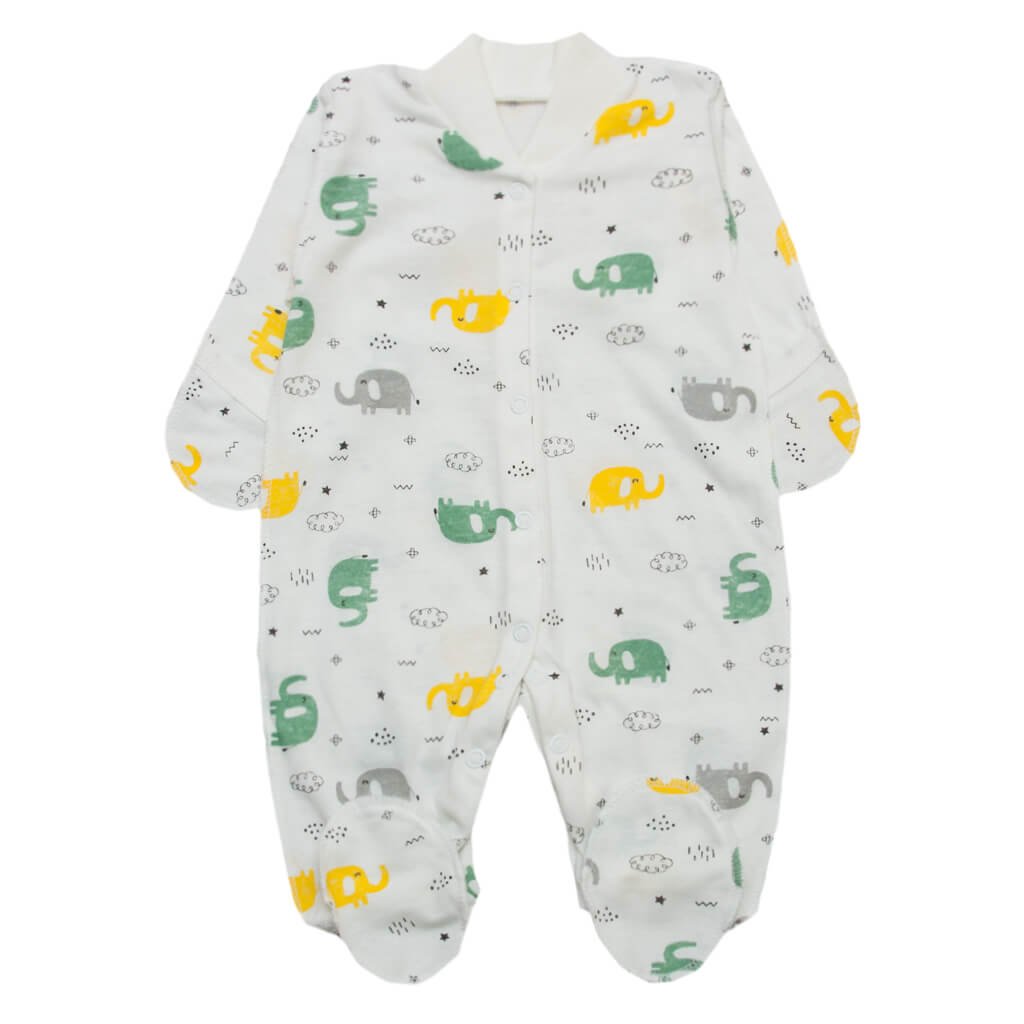 Спальник дитячий білий з малюнком слоників пошитий зі 100% бавовняного полотна - кулір. Ця річ повинна бути в гардеробі кожного малятка. Такі вироби дуже зручні та практичні у використанні. Рукави закриті антицарапками - що не дозволяє вашому малятку дряпати себе нігтиками. Шви пошиті назовні, ніжній шкірі малятка нічого не давитиме і не заважатиме. Спальник застібається на кнопочки по всій довжині. У нашому інтернет-магазині Ви знайдете тільки якісні і красиві речі для діток. Приємних покупок і гарного настрою!
