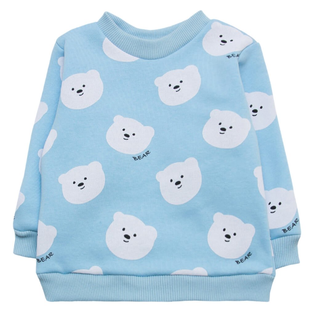 У холодну пору року дуже важливо мати в гардеробі малюка декілька утеплених кофтинок. Дана модель кофти блакитного кольору для найменших виготовлена з якісної трьохнитки - це досить щільний трикотаж, утеплений зсередини. Світшот має милі малюнки по всьому периметру. Однотонний стрейч на горловині, рукавах та знизу гармонійно підходить до основного полотна. В нашому інтернет-магазині Ви також можете підібрати штанці до цього реглану або одразу придбати комплект. Якщо у Вас виникнуть труднощі з підбором розміру, наші менеджери завжди допоможуть Вам!