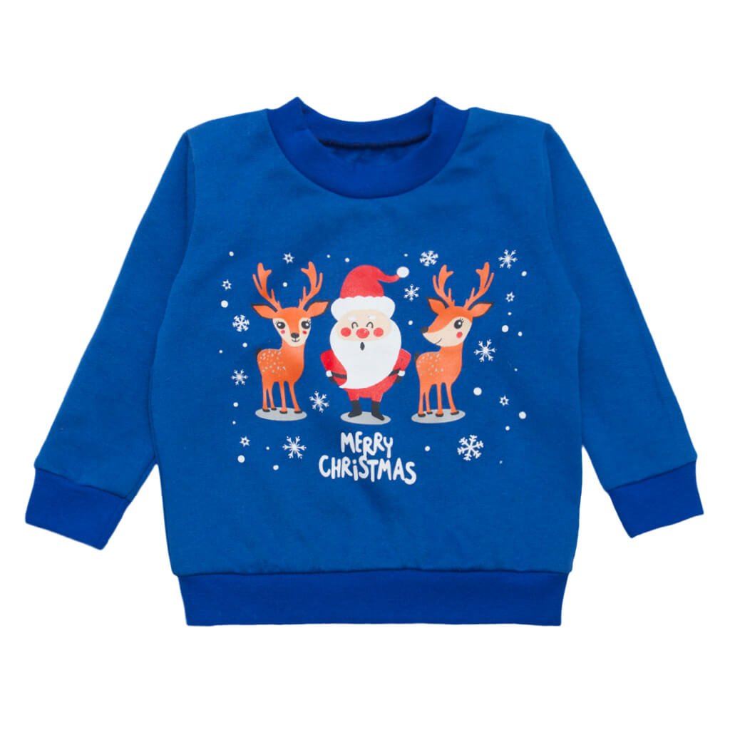 Дитячий джемпер - дуже зручна та практична кофточка для малюка. Джемпера з начісним утепленням ідеально підходять для осені та зими. До Вашої уваги представлена нова модель дитячої кофточки, яка виконана з високоякісного трикотажного матеріалу, синього кольору з новорічним принтом. Краї рукавів, горловини та низ виробу оброблені манжетами. Прикрашає джемпер неймовірне фарбування, яке розташоване на передній стороні. Такий стильний джемпер можна з легкістю поєднувати з абсолютно будь-якими джинсами та штанами. Наш інтернет-магазин «Арлекин» буде дуже радий Вашому замовленню!
