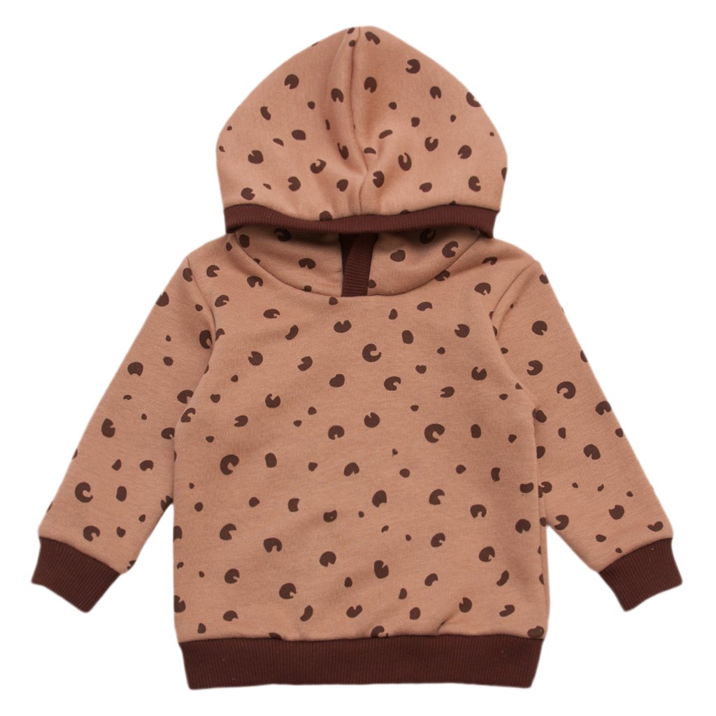 Чи готові поповнити гардероб Вашої дитини стильним і сучасним речами? Тоді Ви потрапили на потрібний інтернет-магазин, на нашому сайті тільки якісні вироби для малюків. Представляємо Вашій увазі неймовірно модну і цікаву кофту з капюшоном коричневого кольору. Виготовлена з м'якого і приємного на дотик полотна 3-х нитка петля, більшість дитячих речей виготовляються саме з цього полотна. На тканині присутні привабливі малюнки. Також є манжети на всіх краях даної кофти. Швидше оформляйте своє замовлення на нашому сайті.