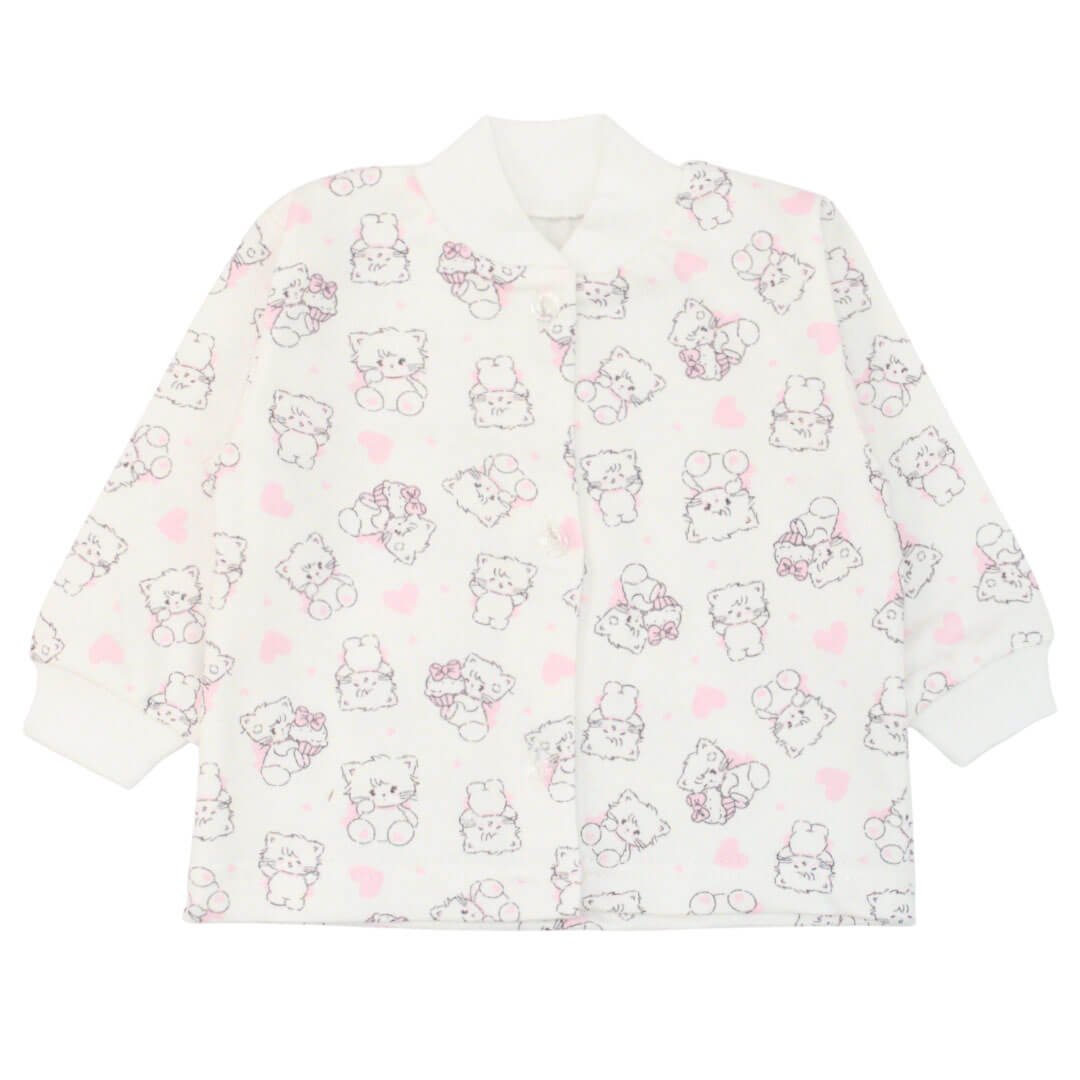 Кофтинка для малюків виконана з м'якого полотна з начосом молочного кольору з принтом киць, яке приємно відчувається на шкірі та підходить для щоденного використання. Матеріал зберігає форму, не грубіє після прання і залишається акуратним навіть при активному носінні. Кофтинка застібається на ґудзики спереду, що робить процес одягання швидким і зручним, особливо для малюків. Продуманий крій не обмежує рухи дитини і дозволяє відчувати себе вільно під час сну, ігор або прогулянок. Така кофтинка легко поєднується з повзунками, штанцями або комбінезонами, стаючи універсальною частиною дитячого гардеробу.