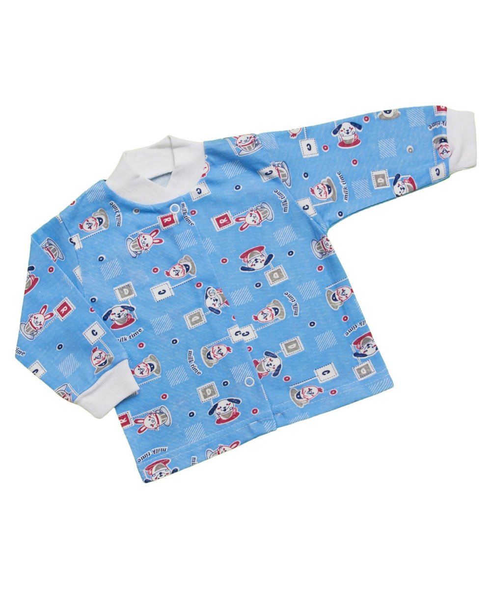 Кофтинка для хлопчика. Особисто мені дуже подобаються такі кофтинки, їх м'яка стієчка з особливої тканини сидить щільно на шийці малюка. Не пропускає протяги, і що найголовніше - ніде нічого не тисне. Точно такі ж й манжетики. М'яка плоска ланцюговий рядок до низу цієї чарівної кофтинки не заважає ні рухатися, ні лежати вашій дитині. Тому такий виріб буде актуальним, коли необхідна велика площина розтягування. Застібається на зручну застібку-кнопку, яка надійно набивається на поличках. Ви можете не переживати про надійність цієї кнопки, вона ні в якому разі не відпаде в самий не підходящий момент.