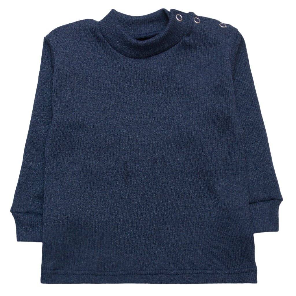 Представляємо вашій увазі теплу водолазку для найменших дітей. Модель пошита з теплого, якісного полотна рубчик-начіс, колір індіго. Полотно приємне до тіла, не втрачає форми та кольору після прання. У цій водолазці є горловина стійка, що щільно закриватиме шию малюка. А на плічці є кнопки, що досить зручно при перевдяганні. На рукавах манжети, а низ оброблений розпошивом. У такій водолазці вашому малюку буде дуже тепло і до того ж комфортно. Вибирайте потрібний колір та розмір і швидше оформляйте замовлення.