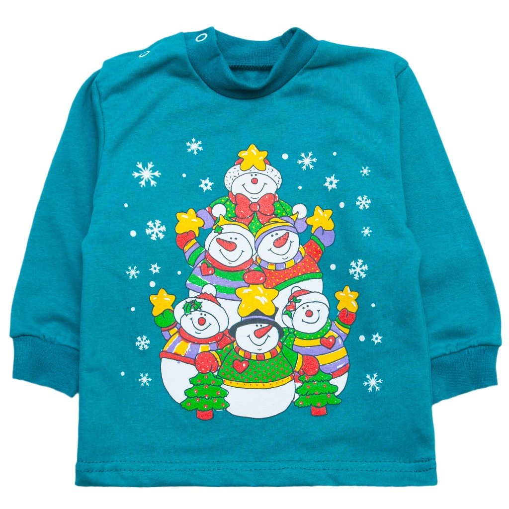 Водолазочка для хлопчика. Модель нашої водолазки з серії «Теплий верхній». Така бірюзова кофточка з сніговичками завжди потрібна в зимовому гардеробі кожної дитини. У холодну погоду всі матусі намагаються підчіплювати теплі, приємні до тіла водолазочки. Представлений вам виріб відмінно сяде на вашу дитину, підійде і за ціною, і за якістю. Ця водолазка зможе виручити вас в будь-яку хвилину, надягнувши під светр або під куртку. Матеріал, з якого виконана моделька – «рубчик». Це полотно добре тримає свою форму, при деформації швидко набуває свій колишній вигляд. ТМ Арлекін надає можливість купити якісний, теплий гольф. Ваш малюк буде задоволений такою покупкою. Гарного дня.