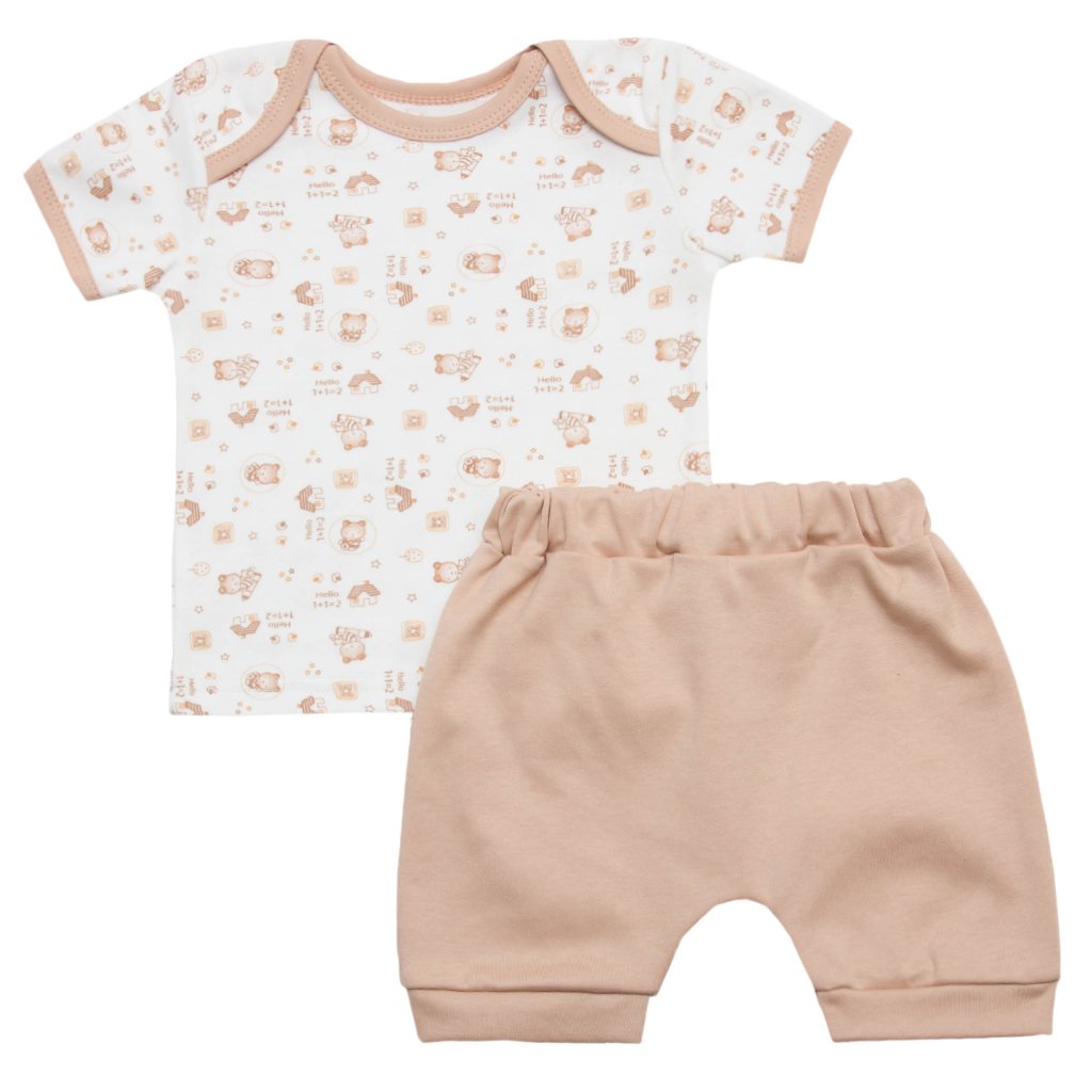 Стильна і неймовірно мила новинка нашого інтернет-магазину "Арлекин" - дитячий комплект футболочки і шортиків. Вироби пошиті з високоякісного трикотажного інтерлоку, який на 100% складається з натуральної та гіпоалергенної бавовни. Футболочка з різними малюночками чудово поєднується з однотонними шортиками. Горловина виконана у вигляді "човника", а краї виробу оброблені бейкою. Шортики на м'якій резинці добре зафіксуються на малюку. Представлений комплект виконаний у приємних та ніжних відтінках, які підійдуть як хлопчикові, так і дівчинці.