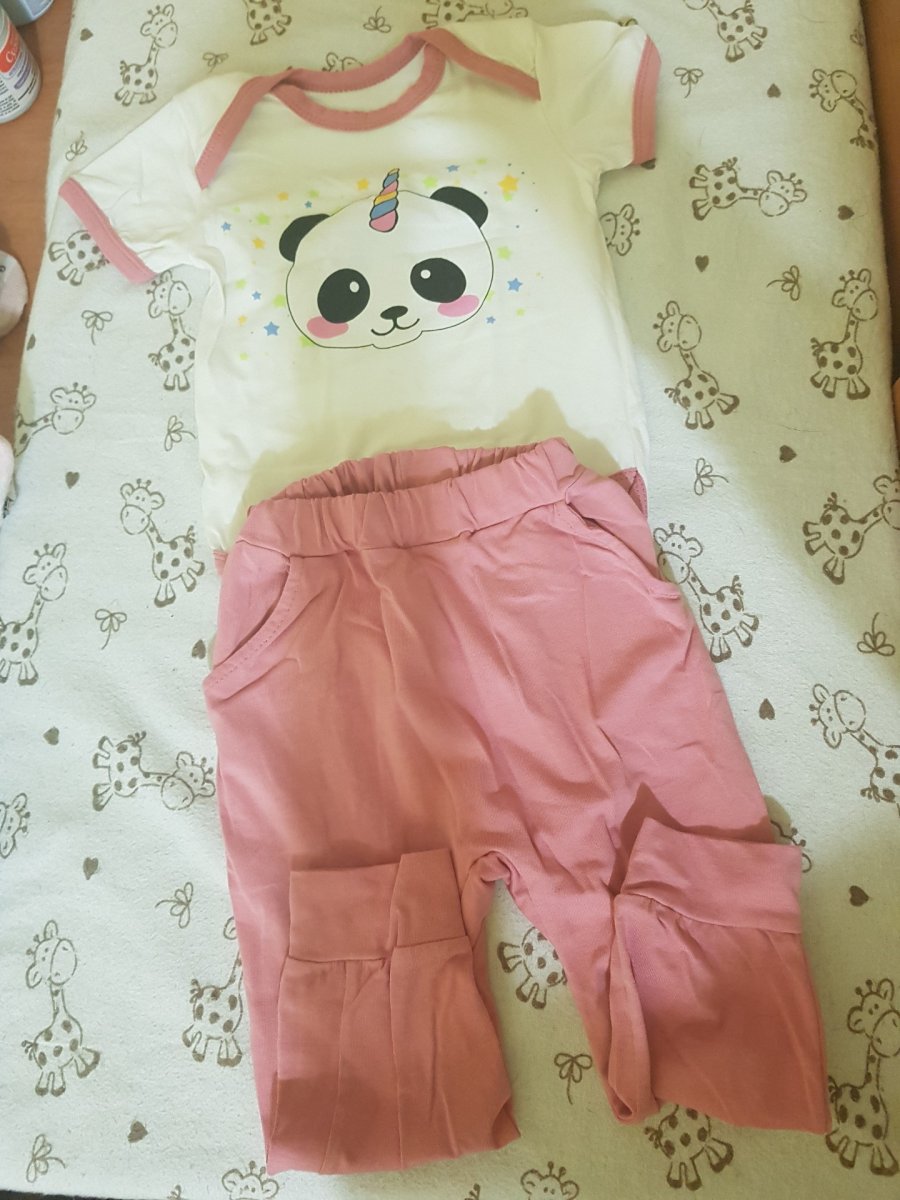Комплект очень красивый, приятная ткань, но размер не соответствует, заказывала размер 80, штаны да по размеру, а бодик маломерит на один размер -