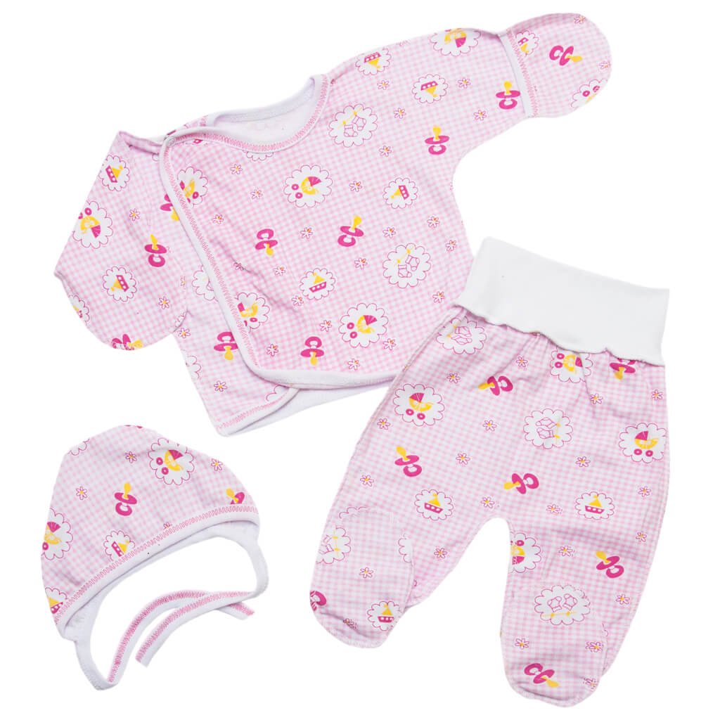 Ясельний комплект для новонароджених дівчаток з кулірного полотна ідеально підходить для першого місяця життя вашого малюка. У комплект, рожевого кольору принт клітинка, цієї модельки входить: сорочечка, повзунки, чепчик. Сорочечка «Метелик», із закритою ручкою, прекрасно закриє ніжне і чутливе тіло від гостреньких коготочкі вашого малюка. Повзунки «Єврики» увійшли до списку обраних №1 серед всіх повзунів, завдяки тому, що вони зручні в носінні, коли малюк в підгузку, а також точно сидить на тілі стрейч-поясу. Чепчик є необхідною частиною гардероба малюка.