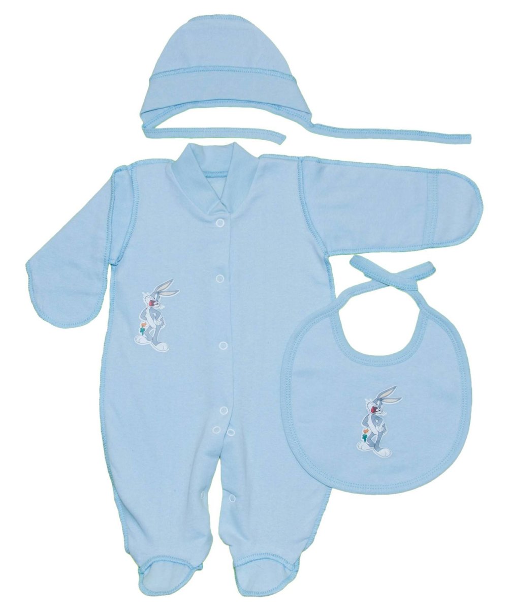 Зверніть увагу на дуже цікавий комплект для маленьких хлопчиків. Виконаний всього у двох розмірах 36 та 40. У комплект входить дуже зручний комбінезон, зшитий швами назовні, щоб не доставляти зайвих незручностей вашому малюку під час сну. Для застібок використані кнопки, а також є симпатичні малюнки на правій штанині. Також в комплект входить зручний чепчик і слинявка також з термонабивкою. Для пошиття використаний матеріал начіс, теплий і дуже приємний до тіла.