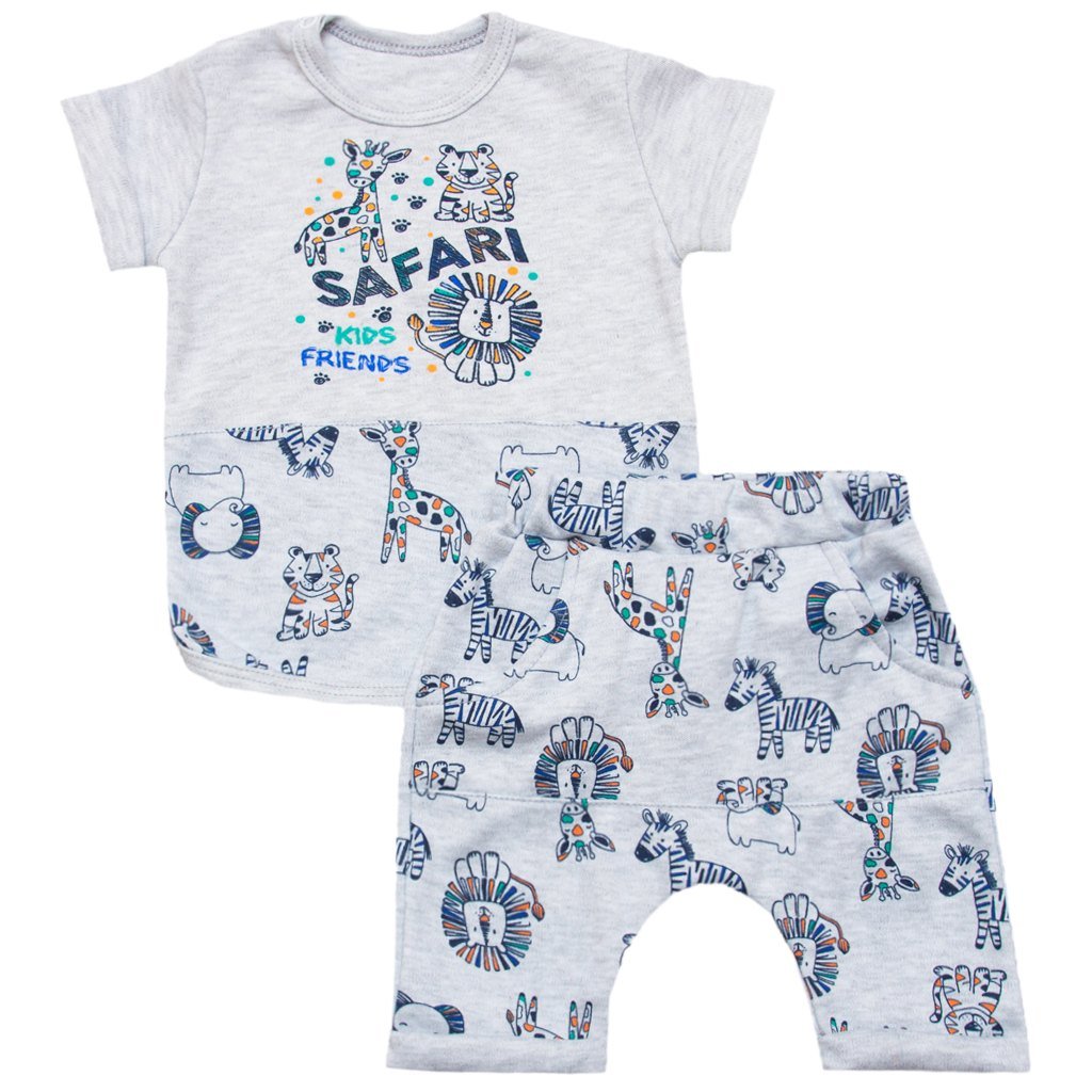 Комплект для хлопчика "Панда" виготовлений з натурального бавовняного полотна - інтерлок. Горловина і низ футболочки оброблені бейкою. На одному плечику футболка застібається на Конопки, що дуже полегшує переодягання малюка. Футболка скомбінована двома кольорами полотна. Рукава і низ шортиків з підворіть. На поясі шортів еластична резинка. Форма шортиків зроблена з розрахунком на підгузник. Родзинкою цього комплекту служить красиве малюнок спереду футболки. Комплект красивий і дуже зручний у використанні.