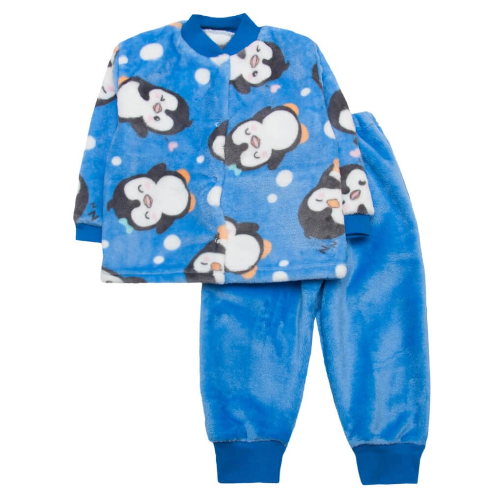 Дитячий блакитний костюмчик з принтом пінгвіни з махри велсофт - неймовірно теплий варіант, який ідеально підходить для холодної пори року. Такий костюм можна використовувати як піжамку, домашній костюм або для щоденних прогулянок. Кофточка застібається на кнопках, на рукавах манжети, що підходять за кольором до основної тканини. Штанці також з манжетами, резинка на поясі м'яка та еластична, чудово тягнеться та зберігає форму. Такий махровий костюм обов'язково повинен з'явитися в гардеробі малюка, адже в ньому дитині буде тепло і затишно навіть у люті морози.