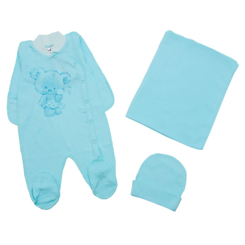 У нашому інтернет-магазині "Арлекин" поповнився асортимент кількома неймовірними модельками дитячих комплектів. Представлений комплект для хлопчика складається з чоловічка, шапочки та пелюшки. Дані вироби - те, що потрібно малюкові в першу чергу. Переваги таких комплектів у тому, що Ви купуєте одразу три речі, які чудово поєднуються між собою. Вироби пошиті із натуральної тканини - рібани. Завдяки такому полотну речі здатні довгий час зберігати свою відмінну якість і форму після численних прань та прасувань.