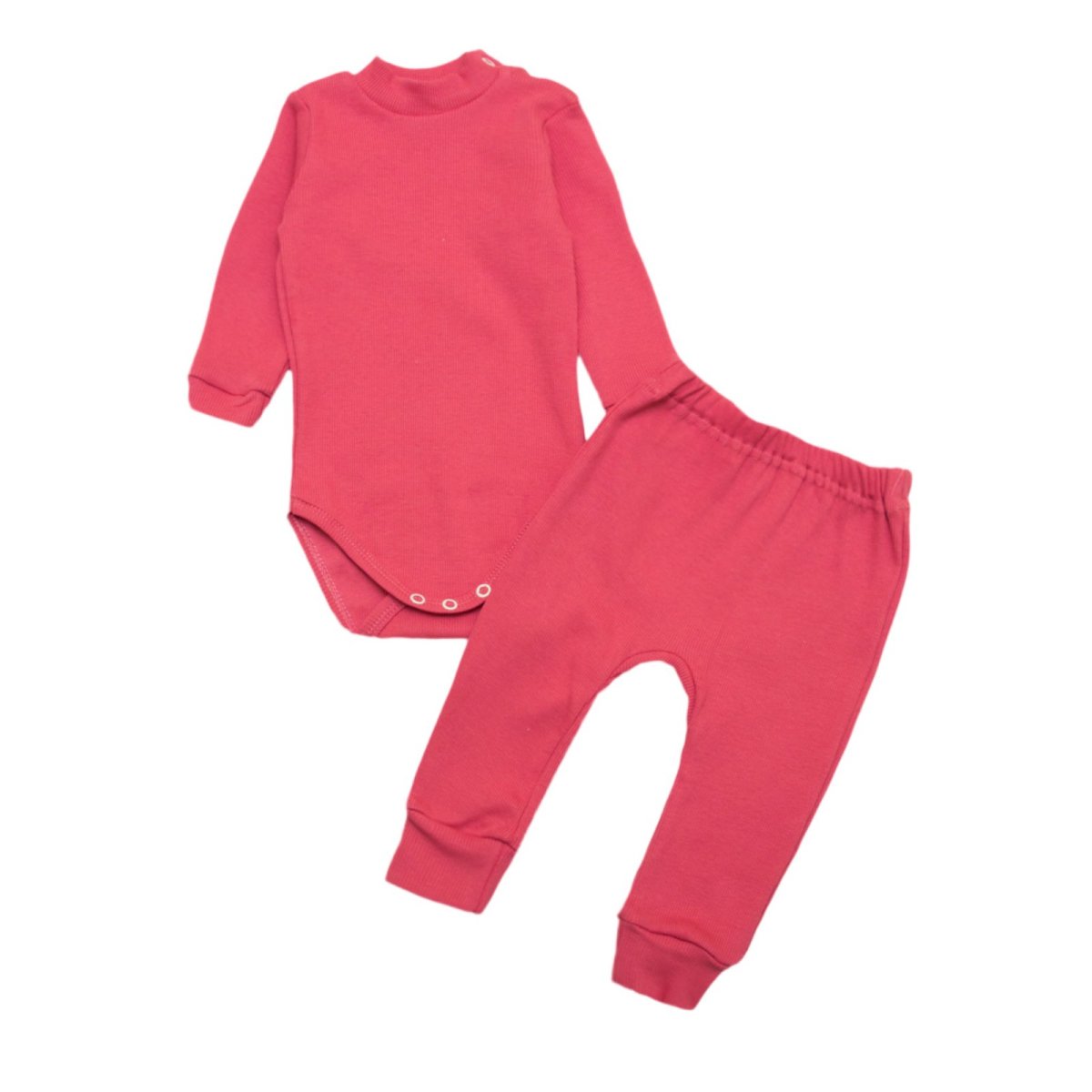 Натхненний затишком і простотою - цей дитячий комплект поєднує в собі комфорт і практичність, які так важливі в одязі для малюків. Він виконаний з м'якого полотна рубчик рожевого кольору, відомого своєю еластичністю та приємною фактурою. Комплект включає однотонний боді-гольф з горловиною-стійкою, яка надійно захищає шию від вітру, і зручні штанці на м'якій резинці. Боді оснащений кнопками внизу і біля горловини для швидкого переодягання. Такий набір підійде як для дому, так і для прогулянок, а різноманітність кольорів допоможе вибрати варіант на будь-який смак.