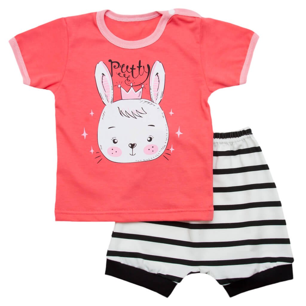 Влітку кожній дівчинці важливо одягатися зручно, і при цьому красиво. Миленький літній комплект для дівчинки точно порадує Вашу маленьку красуню. Футболочка й шортики пошиті з високоякісного і м'якого куліра-пін‘є. Завдяки даному полотну, одяг буде добре тримати свою форму і не сідати. На одному плечику футболки присутня кнопка, що б при одяганні або перевдяганні нічого не доставляло дискомфорт дитині. Спереду є гарне фарбування. Шортики будуть відмінно сидіти на Вашій маленькій модниці, завдяки резинці.