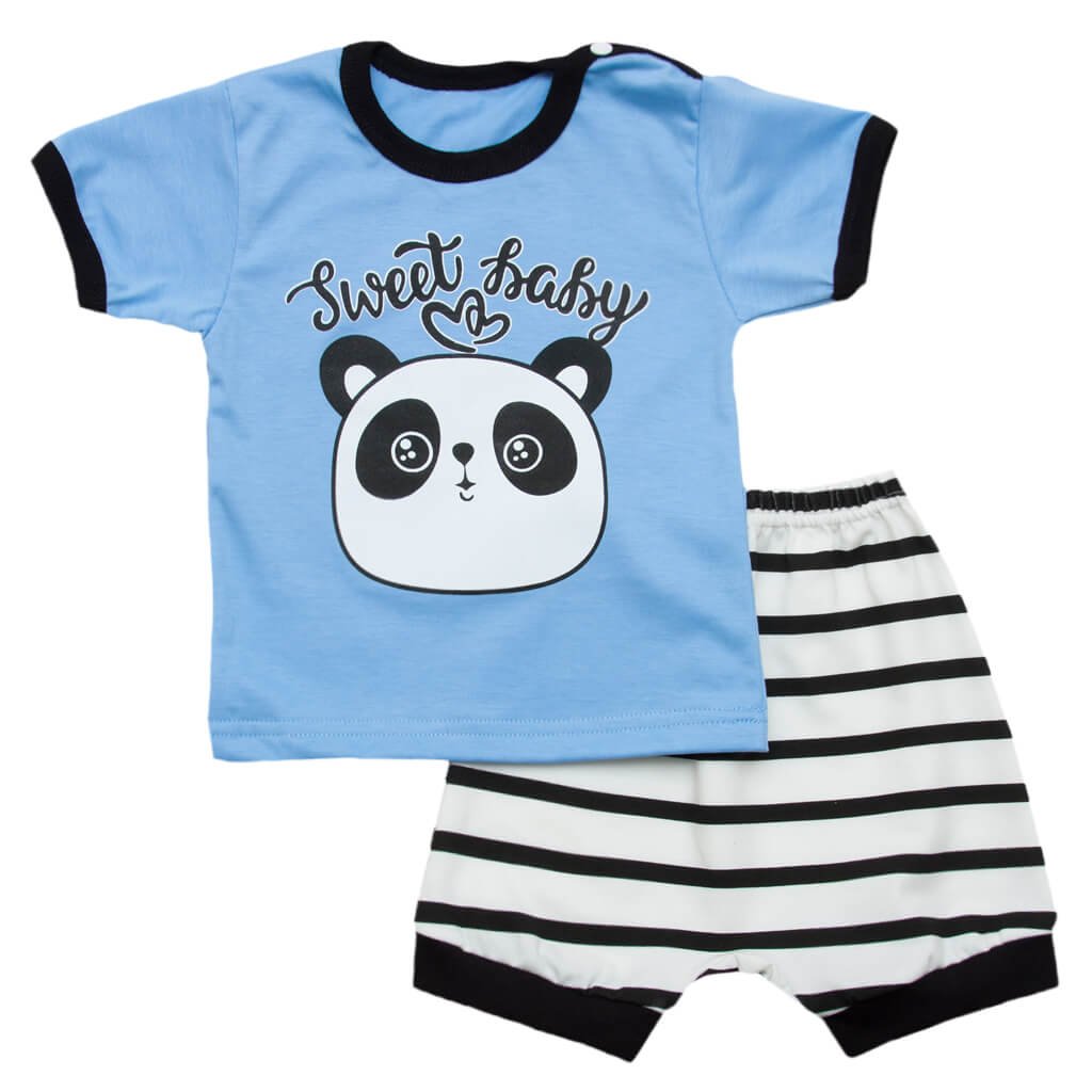 Чудова моделька літнього комплекту для хлопчика вже готова поповнити гардероб Вашого малюка. Комплект складається з футболки та шортів. Вироби пошиті з високоякісного куліра-пін‘є. Завдяки такому полотну Вашій дитині нічого не буде доставляти дискомфорт. На одному плечі футболки присутня кнопочка, за допомогою якої Ви зможете з легкістю одягнути або переодягнути Вашу дитинку. Шорти прекрасно будуть триматися на малюку за допомогою резинки. Комплект досить універсальний: його можна носити як в спекотні літні дні, або ж як просто домашній одяг.