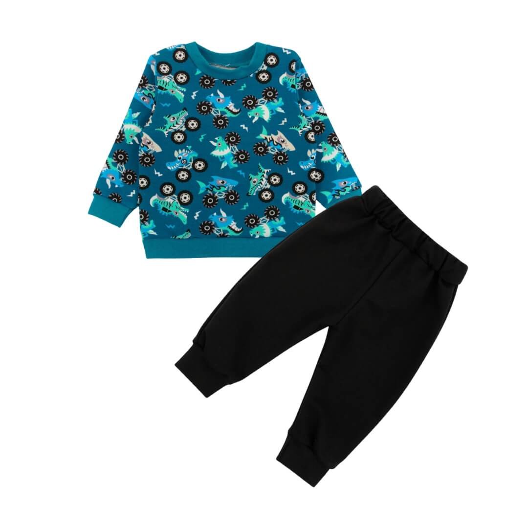 Костюм для хлопчика двонитка 7210-363 Смарагдовий Машинки