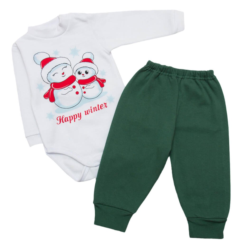 Костюм дитячий Модель 6272-042 Білий Сніговики + Зелений