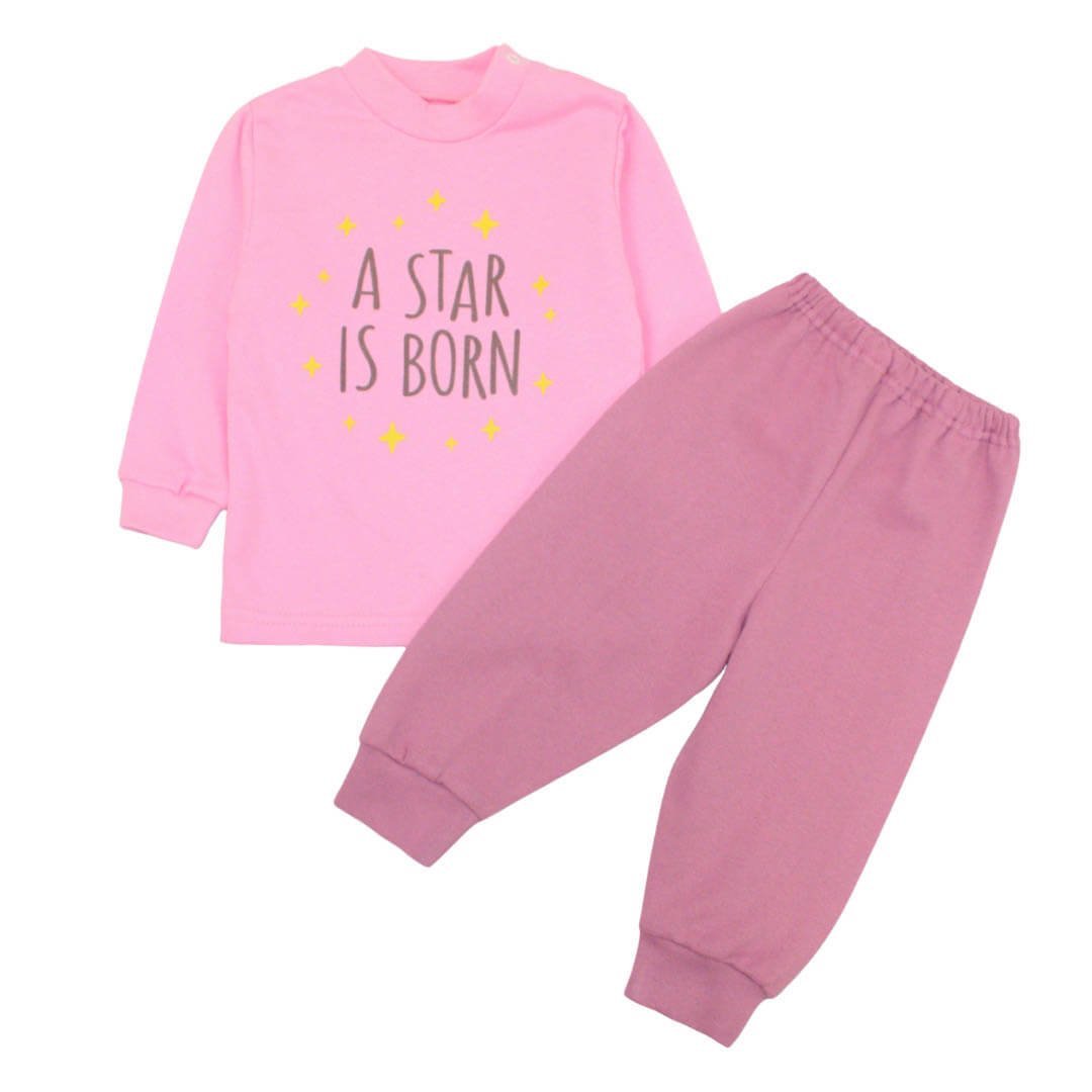 Ясельний костюм для маленьких дівчат і хлопчиків пошитий із теплого полотна начіс, це на 100% бавовняна тканина, що є величезним плюсом. Однотонна дитяча водолазка рожевого кольору з горловиною-стійкою та кнопками на одному плечі спереду прикрашена нанесеним малюнком STAR. Штанці кольору пильна троянда підібрані під водолазку в найбільш підходящому кольорі. Штани без кишень, на манжетах, ще інакше їх називають дитячі гамаші - комфортні під час носіння, вільні за кроєм і чудово підійдуть під памперс. Такий дитячий костюм на зиму, осінь та холодну весну – ідеальний варіант!!