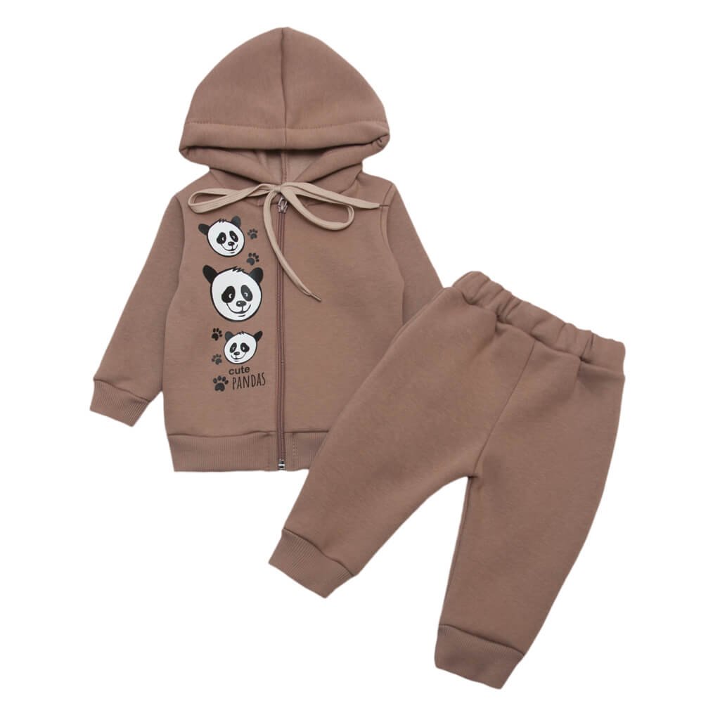 Дитячі комплекти кофтинок і штанців - зручний та багатофункціональний одяг, який потрібен абсолютно кожній дитині. Представлений бежевий комплект з малюнком пандочок складається з кофти на блискавці та штанців. Всі вироби пошиті з якісного полотна - трьохнитки з начісним утепленням. Матеріал досить щільний і теплий, тому в такому костюмчику Вашому карапузові буде неймовірно комфортно. На кофті є невелике фарбування, а також присутній капюшон зі шнурочком. Штанці виконані на м'якій резинці. Будемо з нетерпінням чекати на Ваше замовлення в нашому інтернет-магазині!