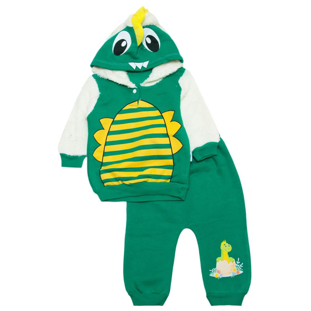 Нове поповнення асортименту нашого інтернет-магазину «Арлекин» вже готовий порадувати багатьох матусь та їхніх діточок! Цього разу ми підготували для Вас неймовірно велику кількість цікавих комплектів для малюків. Представлена модель комплекту для хлопчика, зеленого кольору, складається з кофти з капюшоном і штанців. Кофточка виконана з двох видів полотна: основна частина - трьохнитка з начосом, а рукава і внутрішня частина капюшона - тепла та м'яка махра. Штанці повністю пошиті з трьохнитки з начосом. А цікаве зображення тваринки на капюшоні кофти точно підніме Вам настрій.