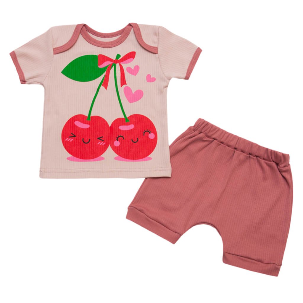 Дитячий літній комплект футболки пудрового кольору і шортів теракотового кольору з полотна інтерлок - це чудовий варіант одягу для активного відпочинку дітей у спекотну пору року. Представлений комплект пошитий з високоякісного трикотажного полотна - інтерлок рапорт. Цей матеріал неймовірно приємний на дотик і має гарну повітропроникність. Такий комплект футболки і шортів - чудовий вибір для дітлахів, оскільки він забезпечує комфорт і свободу рухів. Також вироби мають яскравий і привабливий принт вишеньок, який потішить малюка і додасть радості до його гардеробу.