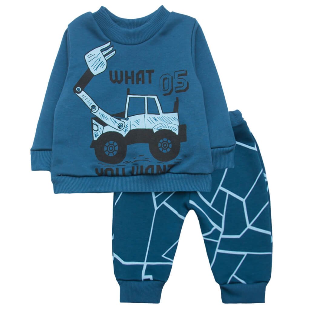 Дитячий комплект для хлопчика - неймовірно стильна новинка нашого інтернет-магазину ТМ Арлекин. Комплект складається з джемпера та штанців. Вироби пошиті з високоякісного бавовняного полотна, яке гарантує Вашому малюкові максимально комфортне носіння. Також такий матеріал досить теплий, тому добре підійде для холодної пори року. Краї виробів оброблені манжетами. На передній частині кофточки та по всій тканині штанів присутні милі візерунки та зображення звірка. Ваш хлопчик точно залишиться задоволеною таким гарним комплектом.